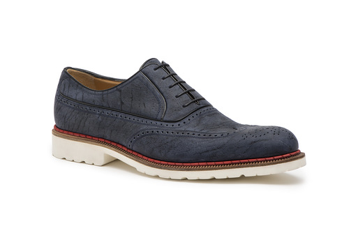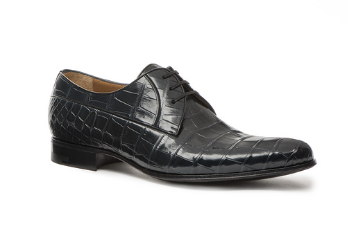 Дерби с «макси-спиралью» в линии Black Label сделаны из плетеной кожи кенгуру и уже в виде готового изделия окрашены вручную искусными мастерами a.testoni, что делает каждую пару такой обуви уникальной. Дерби изготовлены в натуральных оттенках кожи и в красном цвете, а броги – в темно-коричневом и синем ультрамариновом цветах. Портфель из телячьей кожи ручной полировки привлекает внимание высочайшим мастерством исполнения. Для любителей экзотики a.testoni предлагает изделия из кожи аллигатора: дерби синего цвета и темно-коричневую папку для документов.