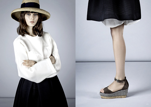 Палитра летней коллекции включает новые оттенки; классические балетки с внутренней платформой 25 мм станут культовыми моделями, дополненные новыми оригинальными и модными деталями. Очаровательны босоножки в стиле Шанель с открытым носком, ремешком и пряжкой на щиколотке, на каблуке 85 мм, выполненные в эффектных коралловом, синем электрик и красном цветах. Как никогда раньше ярки обновленные сочетания мягкой замши и хлопка с африканским принтом – красные, синие электрик, темно-коричневые, или замши и лаковой кожи – коралловые, сливовые, цвета льда и черные. Из таких материалов изготовлены модели с ремешком вокруг лодыжки, Mери Джейн, Шанель, туфли-лодочки на высокой тонкой танкетке 100 мм и классические балетки.