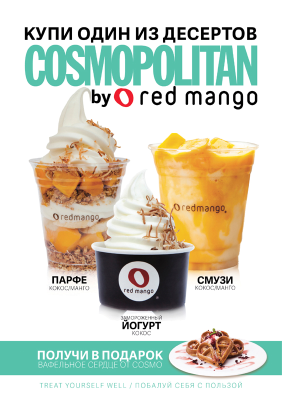 Журнал Cosmopolitan и сеть кафе замороженных йогуртов премиального качества Red Mango представляют три новых десерта Cosmo: натуральный кокосовый йогурт, парфе и смузи со вкусом манго-кокос.