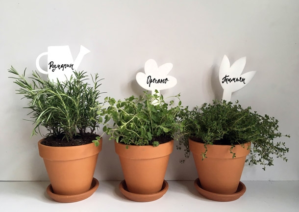 Три садовые таблички — чтобы не забыть, где что посажено, просто написать названия высаженных растений маркером (он легко смывается с пластика).
