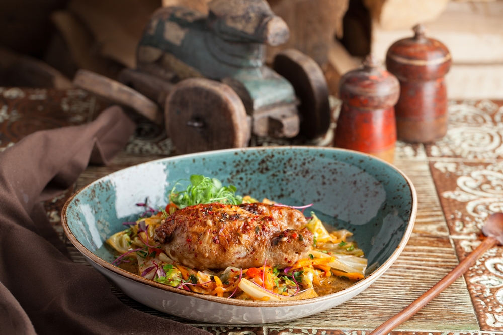 Фермерский цыпленок с тушеной капустой 800 рублей