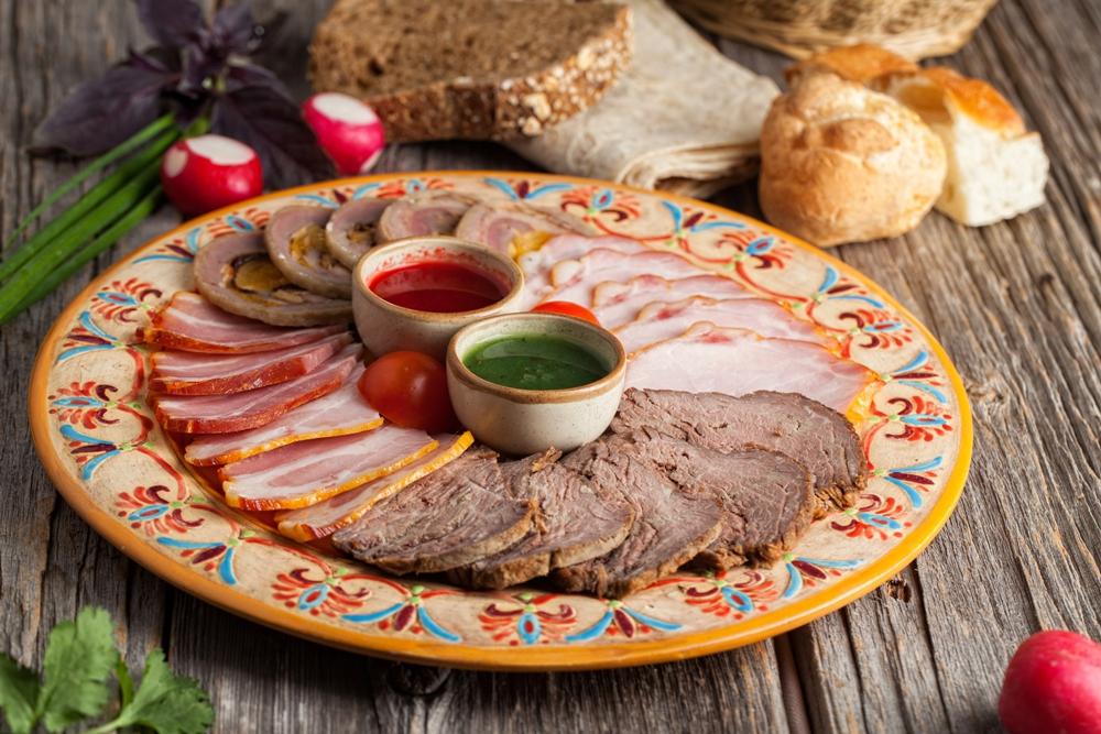 - Тарелка армянского вяленого мяса (бастурма из индейки, говядины, свинины и суджук)