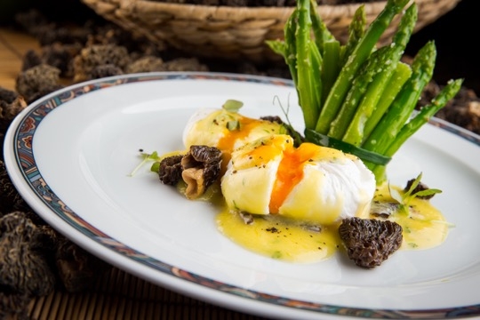 В специальном весеннем предложении представлены пять блюд: Салат с морепродуктами и сморчками под соусом ХО (950 руб.) – листья рукколы в сочетании с креветками, гребешками, кальмарами, филе дикого сибаса и сморчками под китайским соусом ХО; Картофельный крем-суп со сморчками (450 руб.) с ароматным трюфельным маслом и кальмарами; Запечённая спаржа с цветочной солью, сморчками и яйцом-пашот под соусом беарнез (850 руб.), Говяжья вырезка с мини-картофелем с соусом из сморчков (1450 руб) и Рулеты из куриных грудок, фаршированные сморчками и ароматной зеленью (750 руб).