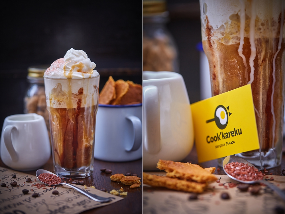 В Cook'kareku шеф-бармен Влад Осипов ввел в меню приятно кислый и зеленый, как только что остриженный газон, смузи «Ананас-базилик» (320 руб.). И лимонады – «Бамбичо» (350 руб.) из сезонного крыжовника и «Холодный шиповник» (250 руб.). И солнечно-желтый фраппе «Сен-Тропе» (340 руб.) из банана, манго, персика, маракуйи и кокоса. И фраппучино с говорящим названием «Соленая карамель» (300 руб.), в него добавляют гималайскую соль. И еще кофе «Бамбл» (280 руб.), куда помимо эспрессо идут карамельный сироп и апельсиновый фреш: мощнейший энергетик оживит даже тех, кого жара совсем лишила сил.