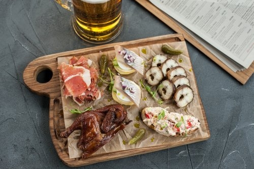 В каждом наборе было продумано разнообразие вкусов, текстур и сочетаний, чтобы гости могли прочувствовать концепцию меню ZOO Beer&Grill. Каждый сет подается на большой деревянной доске. Первый (960 руб.) представляет собой аппетитное ассорти из соленых огурцов, кильки на тостах, сыра чечил, копченых свиных ребер и копченых куриных крыльев. Второй сет (1500 руб) включает утиную грудку горячего копчения, брускетту с лососем, скумбрию холодного копчения, гренки с форшмаком и магаданские отварные креветки. В третьем наборе (2100 руб.) гостей ждет нежный хамон серрано, брускетты с крабом, копченый цыпленок, угорь горячего копчения и сельдь с картофелем. Андрей Ревунов обещает менять и дополнять ассортимент наборов закусок, поэтому стоит поспешить, чтобы попробовать актуальное меню этой зимы.
