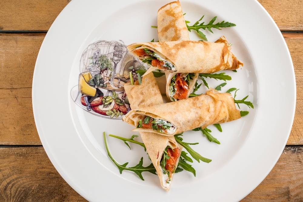 Павел Галковский, бренд-шеф сети ресторанов «Ти-Бон Wine», для Масленицы придумал меню, которое условно можно разделить на две части: блины с разнообразными начинками и блины в составе сложносочиненных блюд.