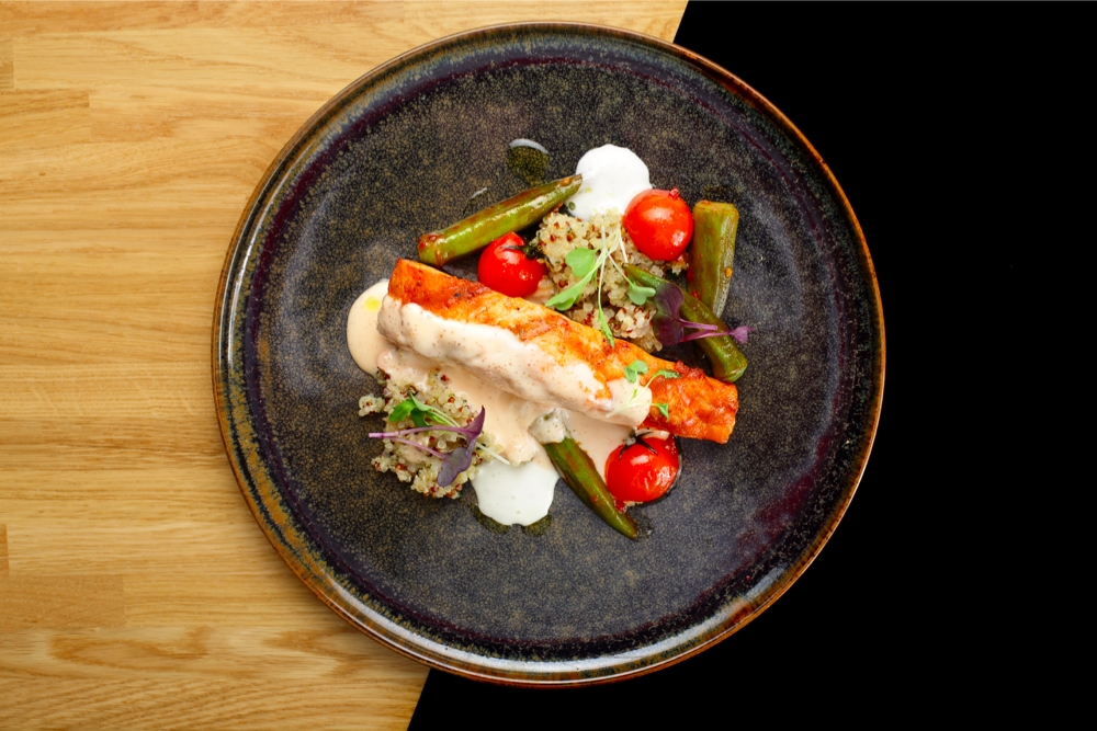 За кухню в «Жаровне» отвечает молодой и амбициозный бренд-шеф Иван Кравец, успевший поработать с Гленом Баллисом в «Недальнем Востоке», Давидом Эмерле в Christal Room Baccarat и обладателем трех звезд гида Мишлен Эриком Фрешоном. Название проекта говорит само за себя – большинство ингредиентов для блюд здесь жарят на гриле хоспер, куда отправляют куриную грудку и томаты черри для классического цезаря (520 руб.), осьминога с авокадо (1400 руб.), тыкву для крем-супа с камчатским крабом (390 руб.) и сахалинских морских гребешков (1200 руб.). В качестве легкого перекуса гостям предлагают брускетты – с подкопченным маслом, куриным паштетом и брусникой (260 руб.) и с говяжьей щекой и белыми грибами (320 руб.). Салаты стараются готовить с минимальным количеством масла и соусов: утку маринуют в азиатских специях и подают с листьями салата, брусникой и грейпфрутом (520 руб.), а салат с угрем – с горгонзолой и пикантным соусом на основе чили-перца (580 руб.). С дымком готовят уху с костра (360 руб.), которую размешивают жженой берестой. Из основных блюд есть стейки рибай (700 руб./100 г.,) и антрекот (600 руб./100 г.) 200-дневного зернового откорма, «Жар-бургер» (350 руб.) с бифштексом, сыром чеддер и брусничным соусом, пряные свиные ребрышки (550 руб.) и крымские мидии в спелых томатах, сидре или сливочном соусе (от 480 руб. за 150 г.). К блюдам идет копченое на углях масло с ароматным домашним хлебом– его, как и булочки для бургеров, соусы, мороженое и десерты, готовят на собственной фабрике-кухне. Сейчас в «Жаровне» на Большой Дмитровке можно попробовать морковный торт с кардамоном, мускатом и жженой карамелью (280 руб.), классический медовик с сорбетом из черной смородины (280 руб.) и шоколадный фондан (320 руб.) с кокосовым мороженым (320 руб.).