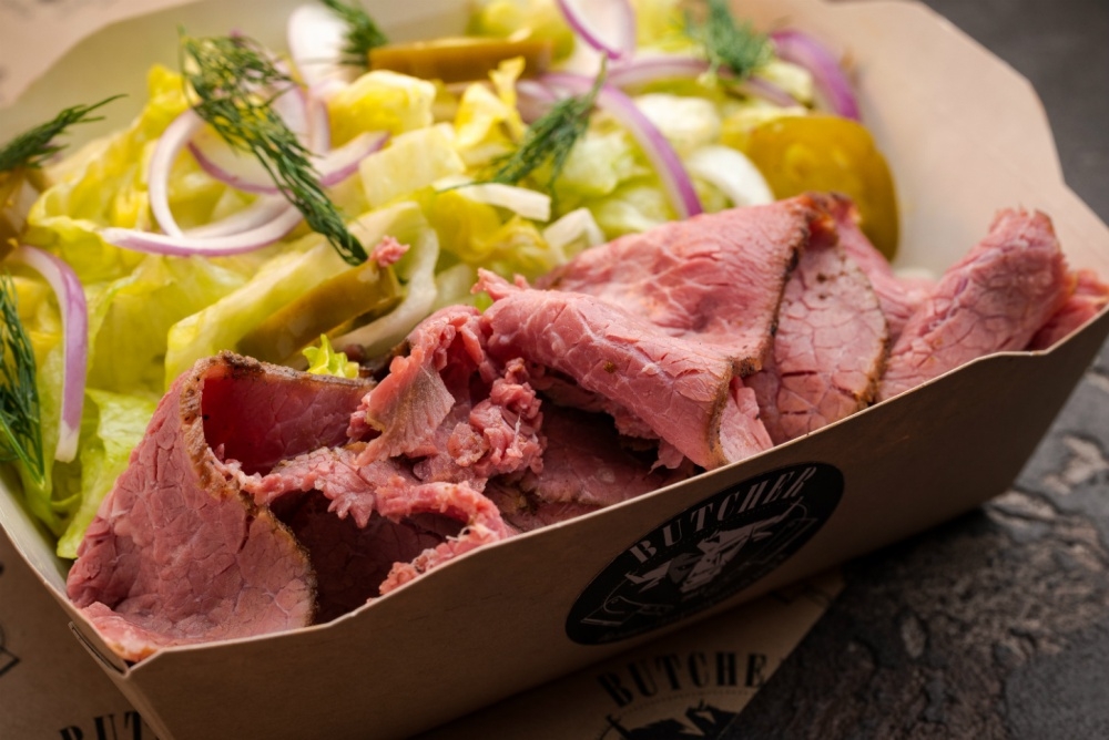 В Butcher можно заказать шашлык, или купить готовый. Здесь замаринуют под заказ любое мясо. Также можно позвонить и забронировать маринованное мясо на определенный день и время. В ассортименте: шашлык из говядины (200 руб. за 100 г.), баранины (389 руб. за 100 г.), Блейд (220 руб. за 100 г). Мясники Butcher могут сделать шашлык из мяса, которое принесут сами гости. Например, из дичи: кабана или лося (заказывать за сутки). Также в ассортименте большой выбор напитков: лимонадов и морсов (130 руб.), крафтового пива.