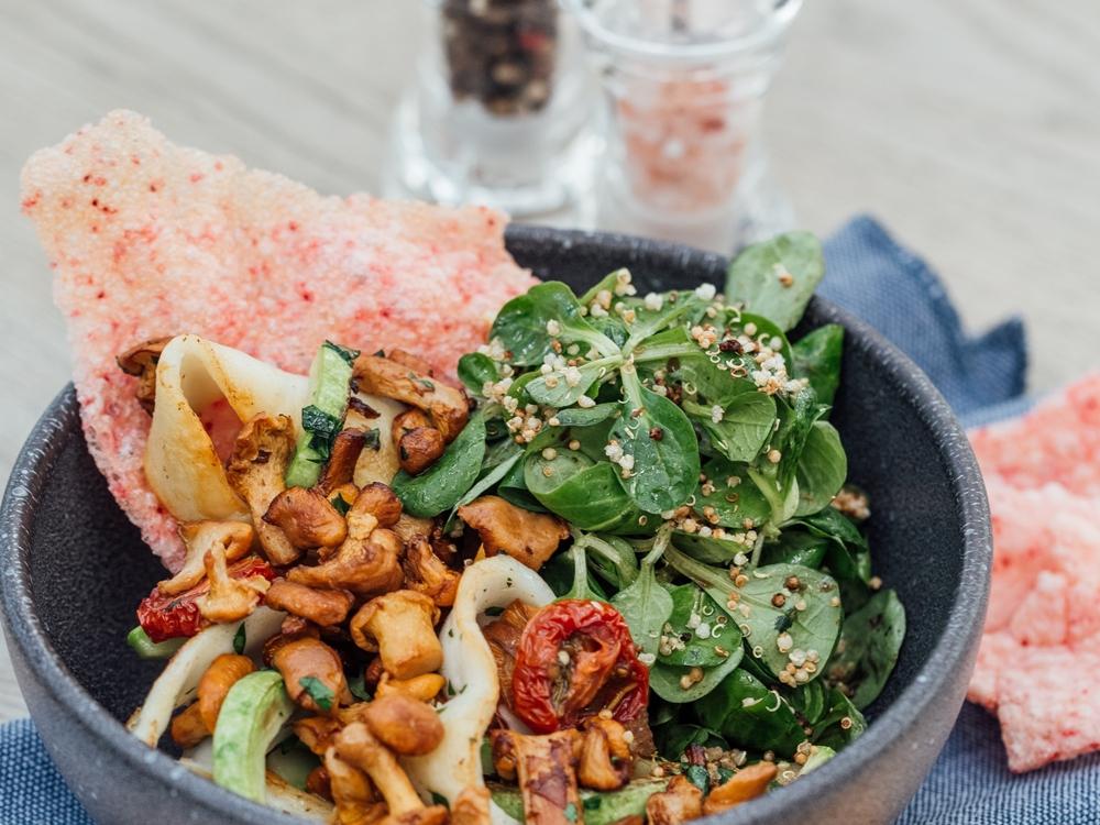 • Салат с рукколой и лисичками;