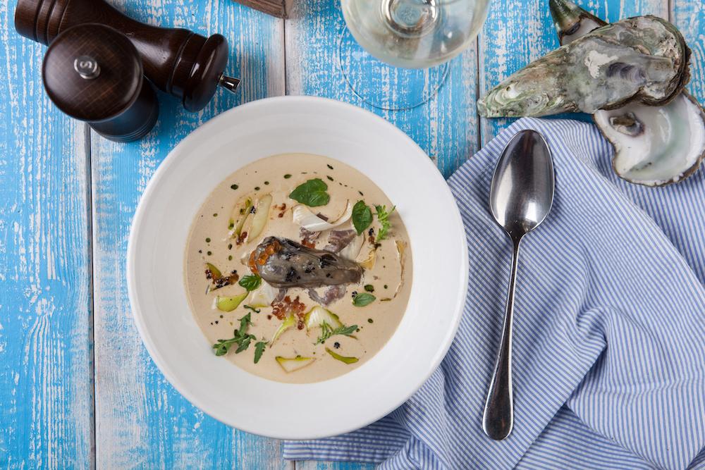 - Суп из гусиной печени с жареной устрицей 590 рублей