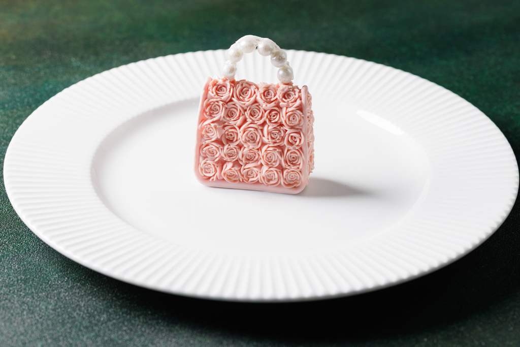 Специально к празднику бренд-шеф Джузеппе Дави создал авторский десерт в форме элегантной дамской сумочки, который будет вручаться каждой гостье в качестве комплемента. Под его изящным корпусом скрывается воздушный мусс на основе йогурта и белого шоколада. В центре — компоте из свежей клубники с апельсином, которое создает выразительный контраст вкусов. Десерт дополнен классическим бисквитом.